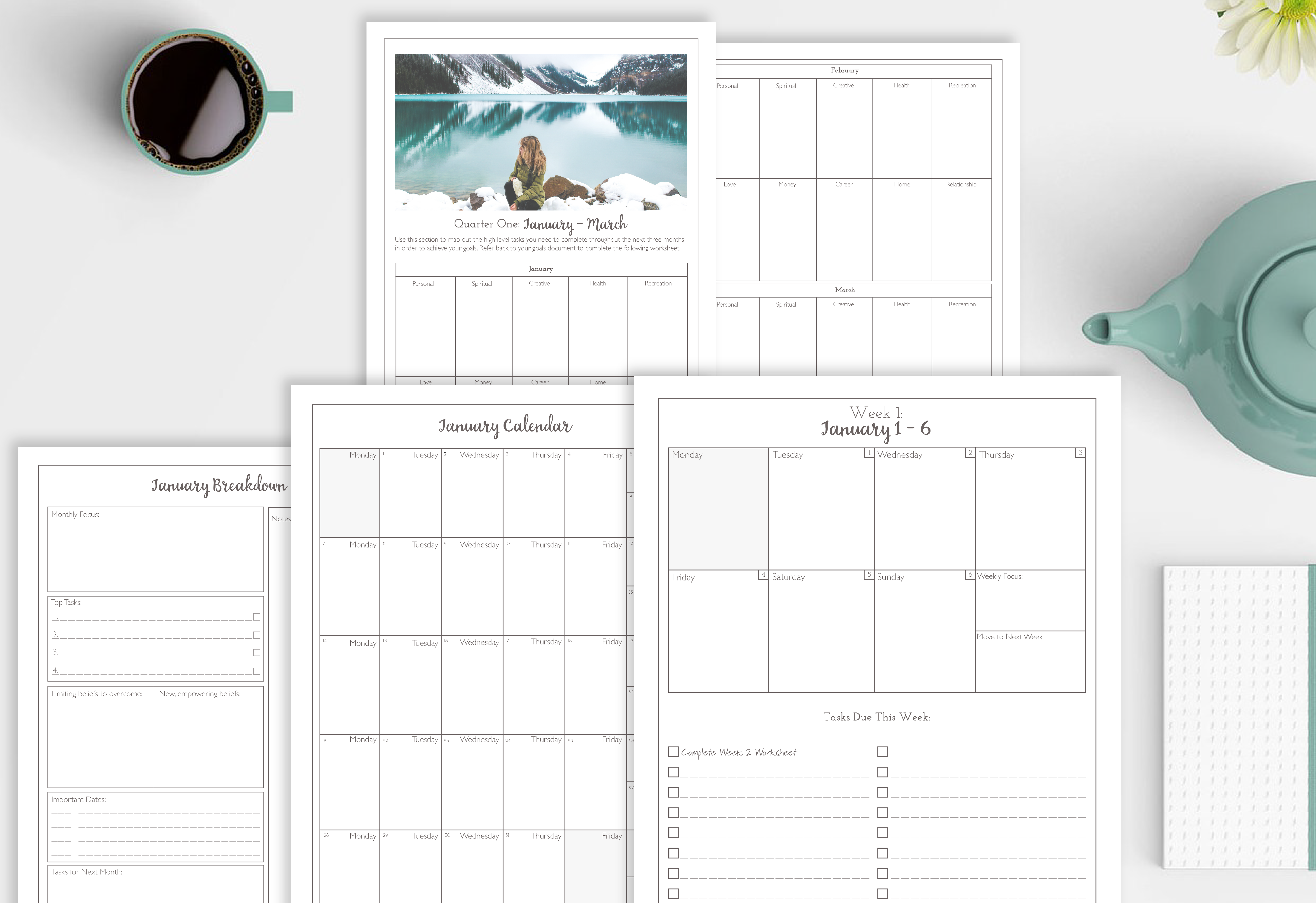 I designed my Intentional Living Guidebook & Planner to be used for quarterly, monthly, and weekly planning and goal tracking.